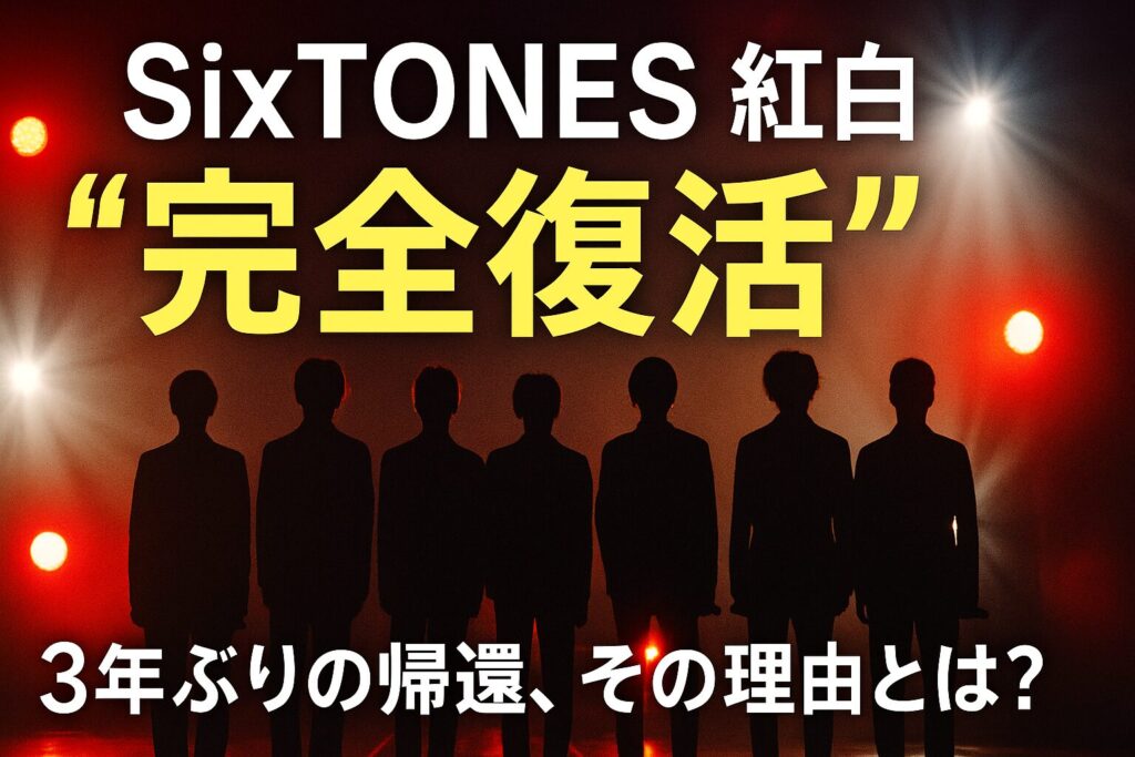 SixTONESがついに紅白へ“完全復活”。3年ぶりの大舞台に戻ってくるまでの背景には、メンバーの努力と揺るがない想い、そしてずっと支え続けたファンの存在がありました。今回の復帰がどれほど特別な一歩なのか、その理由と感動の声をやさしくまとめます。 -