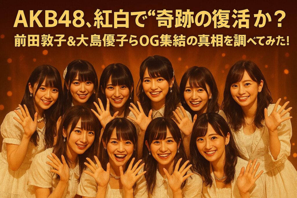 AKB48が紅白で“奇跡の復活”。前田敦子・大島優子ら黄金期OGの出演可能性や披露曲予想、復活の理由をわかりやすく解説します。ファンが再び胸を熱くする特別なステージの背景とは?
