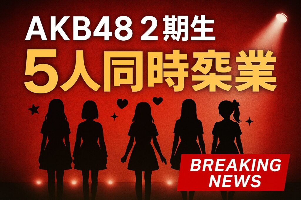 AKB48・2期生の5人が同時卒業を発表し、ファンの間に驚きと涙が広がりました。 ステージで語られた言葉や最後の笑顔には、前へ進むための強い決意が込められていました。 この記事では、卒業理由やラスト公演の様子、5人の今後についてやさしくまとめています。 -