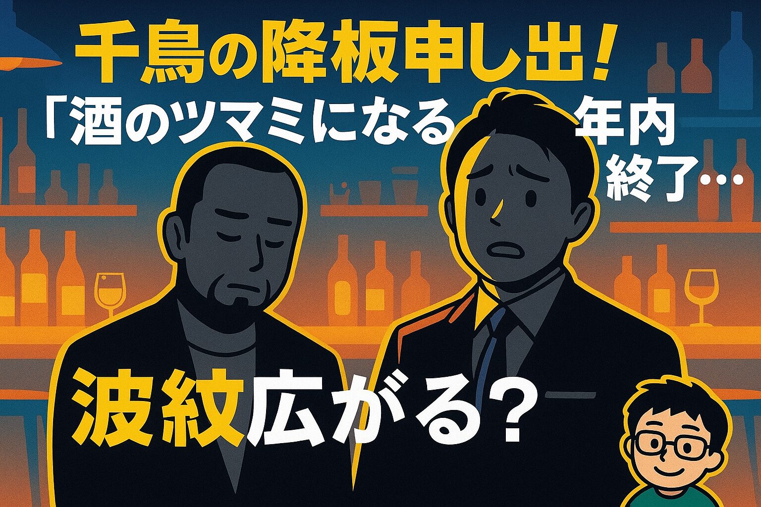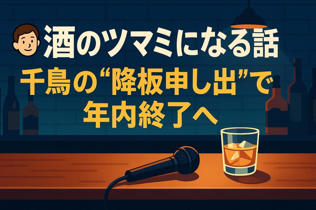 人気お笑いコンビ**「千鳥」**がMCを務める人気番組『酒のツマミになる話』(フジテレビ系)が、年内での終了を迎えることが明らかになりました。