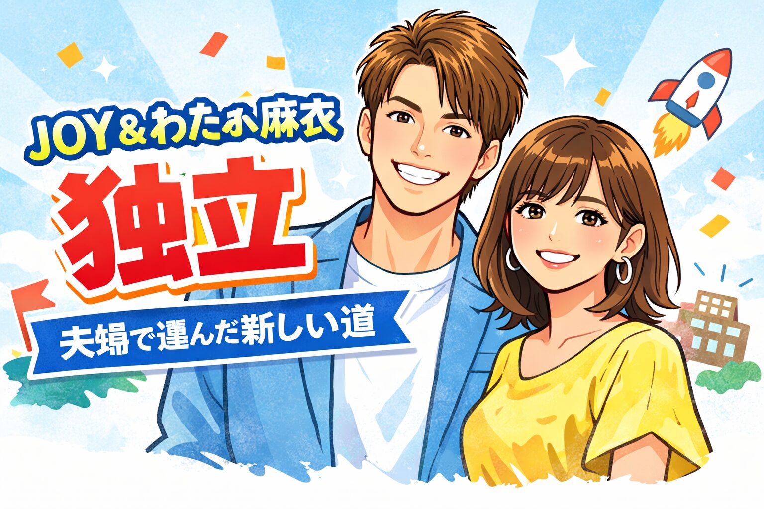 結論から言うと、今回の独立はトラブルや対立によるものではなく、仕事の進め方を見直したうえでの前向きな選択です。**JOYとわたなべ麻衣は、それぞれがこれまで所属していた事務所を退所し、今後は個人として、そして夫婦として新たな形で活動していくことを発表しました。