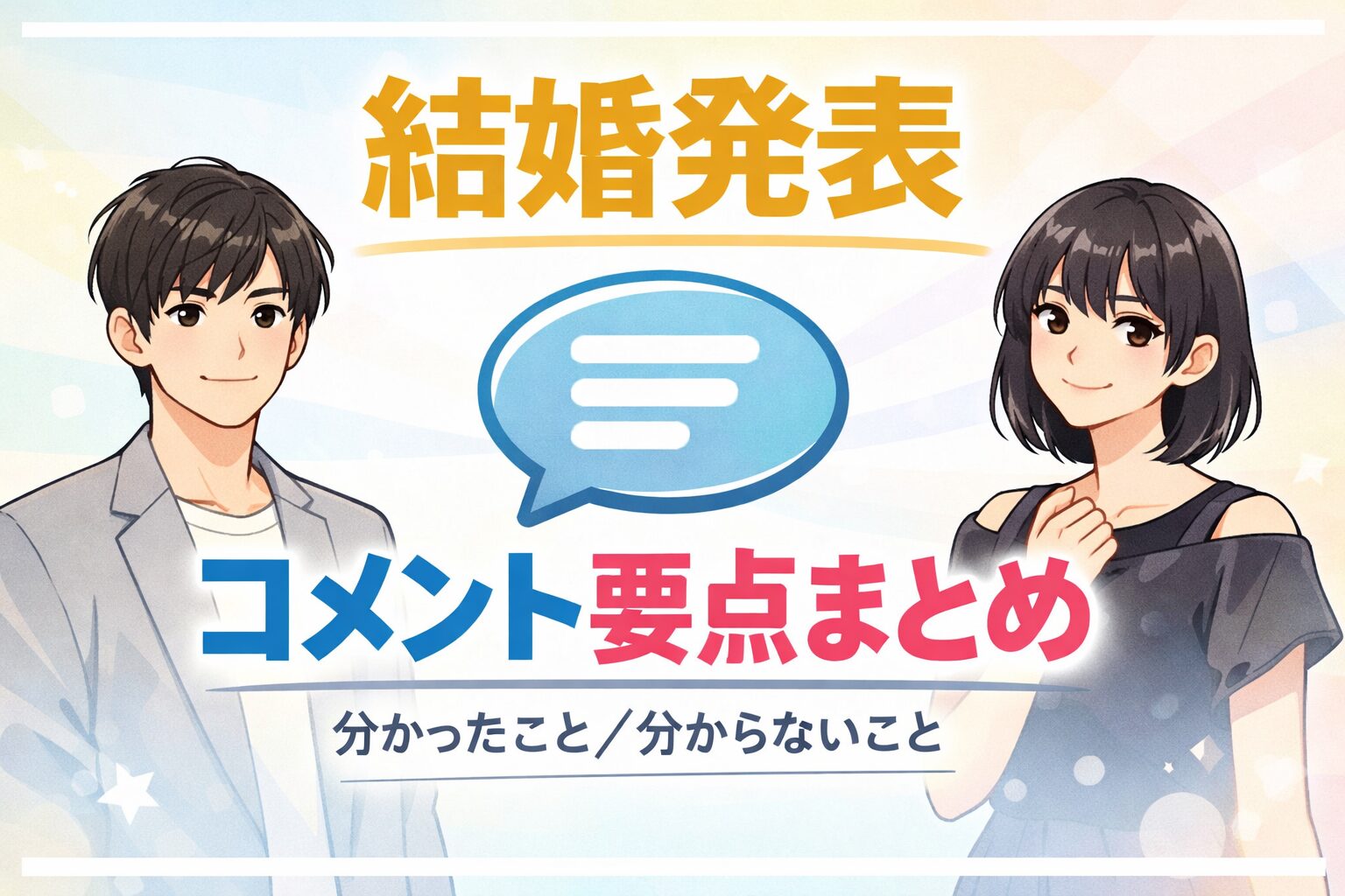 今回の話題の中心は、ネットの憶測ではなく本人たちの結婚発表コメントです。まず確定しているのは「結婚した」という事実と、発表がSNSなど本人発信で行われた点。文章には、支えてくれた人への感謝や、これからも活動を続けていくという決意が込められていることが多く、そこが読者の心を動かします。逆に言えば、コメントにない情報は“まだ分からない”が正解。交際期間や馴れ初め、入籍日、同居の有無などは、明記がない限り非公表として扱うのが安全です。読者がいちばん困るのは「どこまでが事実?」が曖昧なことなので、ここで線引きをはっきりさせます。引用するなら原文の趣旨を崩さず短く要約し、特定や断定につながる表現は避ける。分からない部分を無理に埋めないほど記事の信頼度は上がり、読者も安心して祝福できます。まずは“発表文で確定したこと”だけを押さえ、検索で増える疑問をここで一度すっきりさせましょう。この整理ができると、記事全体がぶれませんよ。発表文にない情報を追わない、その姿勢こそがいちばん温かい祝福になります。