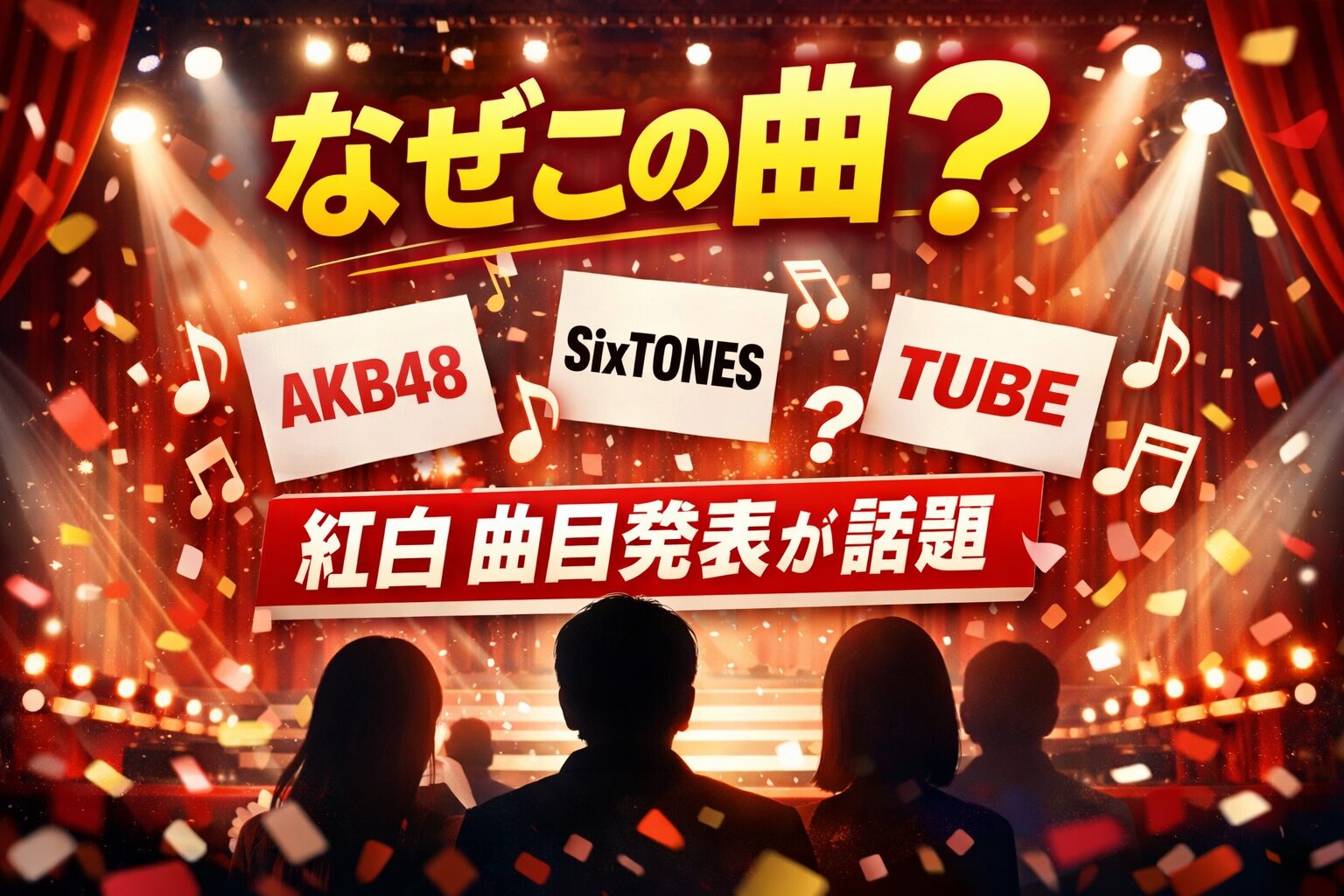 今年の紅白歌合戦で発表された曲目一覧を見て、思わず首をかしげた人も多いのではないでしょうか。AKB48、SixTONES、TUBEといった人気アーティストの名前が並ぶ一方で、「なぜこの曲?」「もっと定番があったのでは?」という声がSNSでも目立ちました。