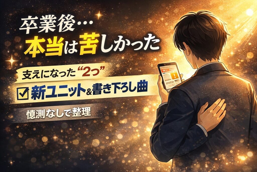 ポイントは、本人が言っているのは「つらかった」という感想ではなく、卒業後の一定期間を「非常に大変」と表現するほど、心身の負荷が大きかったという事実です。華やかな世界にいる人ほど、環境が変わった瞬間にプレッシャーや孤独が一気に押し寄せますよね…。この記事では、まず確定情報だけを整理します。①卒業後に苦しみがあった、②その支えになったのは新ユニット書き下ろし楽曲、③立ち直るまでの道のりを本人が言葉にしている——ここまでは発言ベースで押さえられます。一方で、理由を勝手に想像したり、「◯◯が原因」と断定すると読者を混乱させるので、本文では憶測は入れない前提で進めます。読む側が一番知りたいのは、ドラマチックな煽りではなく「何が大変で、何が支えになったのか」という核心。だからこそ、今の時点で断言できない部分は“未発表”として分け、追記が出たらすぐ更新できる形にします。次のH2では、その支えの中身をもう一段だけ具体化して、あなたが知りたい答えに最短で届くようにまとめていきます。