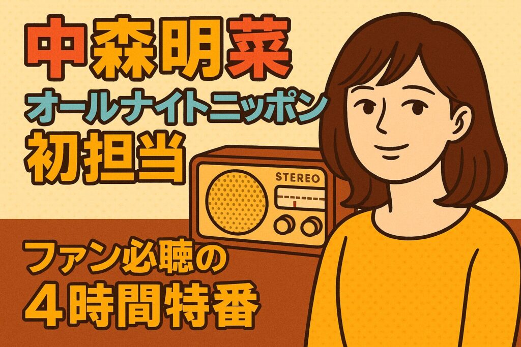 歌手の中森明菜さんが、ついに『オールナイトニッポンGOLD』のパーソナリティを初担当することが発表されました。放送は12月12日の夜8時から、なんと 4時間の特番。長いキャリアの中でも“初めての挑戦”となるラジオ出演とあって、ファンの間では「どんな話が聞けるの?」「明菜ちゃんの声が4時間も…!」と大きな期待が高まっています。