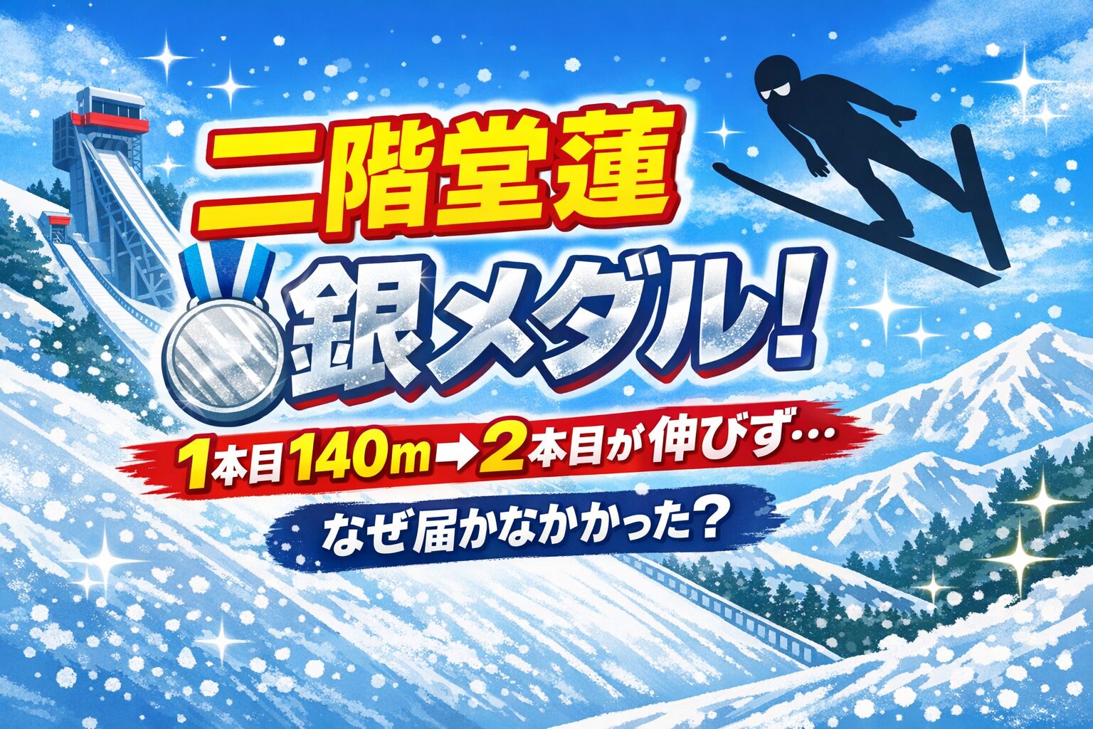 あと一歩、届かなかった――。 その瞬間、テレビの前で思わず息をのんだ人も多いのではないでしょうか。二階堂蓮が銀メダルという結果は誇らしいはずなのに、2本目が伸びなかった事実が胸に残る。1本目で見せた堂々のジャンプ、そして迎えた勝負の2本目。わずかな差が明暗を分けるのが、スキージャンプという競技の厳しさです。それでも、空中で懸命に姿勢を保ち、最後まで飛び切った姿は、順位以上の価値を感じさせました。「悔しい。でも誇らしい」――そんな複雑な感情を抱いた人も多いはずです。この記事では、2本目に何が起きたのかという技術的なポイントとともに、銀メダルの重み、そして挑戦を続ける二階堂選手の姿を、読者目線で丁寧に振り返ります。