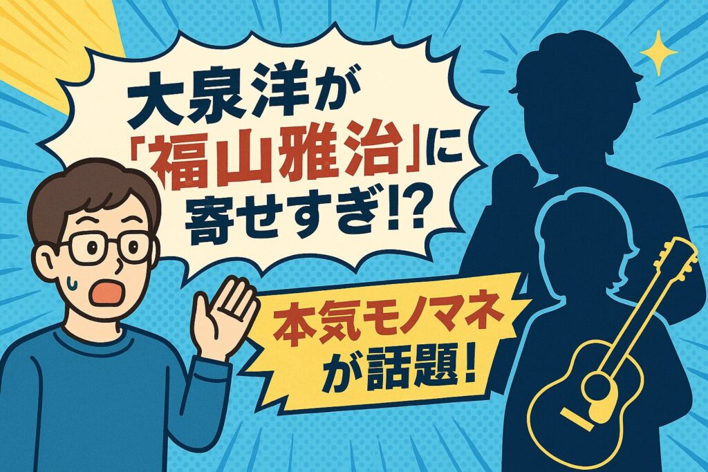 大泉洋さんが番組内で披露した“福山雅治さんの本気モノマネ”が、思わぬ反響を呼んでいます。軽いネタとして始まったはずが、声の寄せ方や雰囲気の再現度があまりにも高く、スタジオにいた出演者たちが思わずザワつくほどの完成度だったと話題になりました。SNSでも「似すぎて笑った」「本当に福山さんかと思った」「クセがあるのに本人感がすごい」といった声が広がっています。大泉さんならではのユーモアと表現力が合わさった、ファン必見の名シーンとも言える今回のモノマネ。いったいどこまで本人に寄せていたのか、その魅力をわかりやすく紹介していきます。