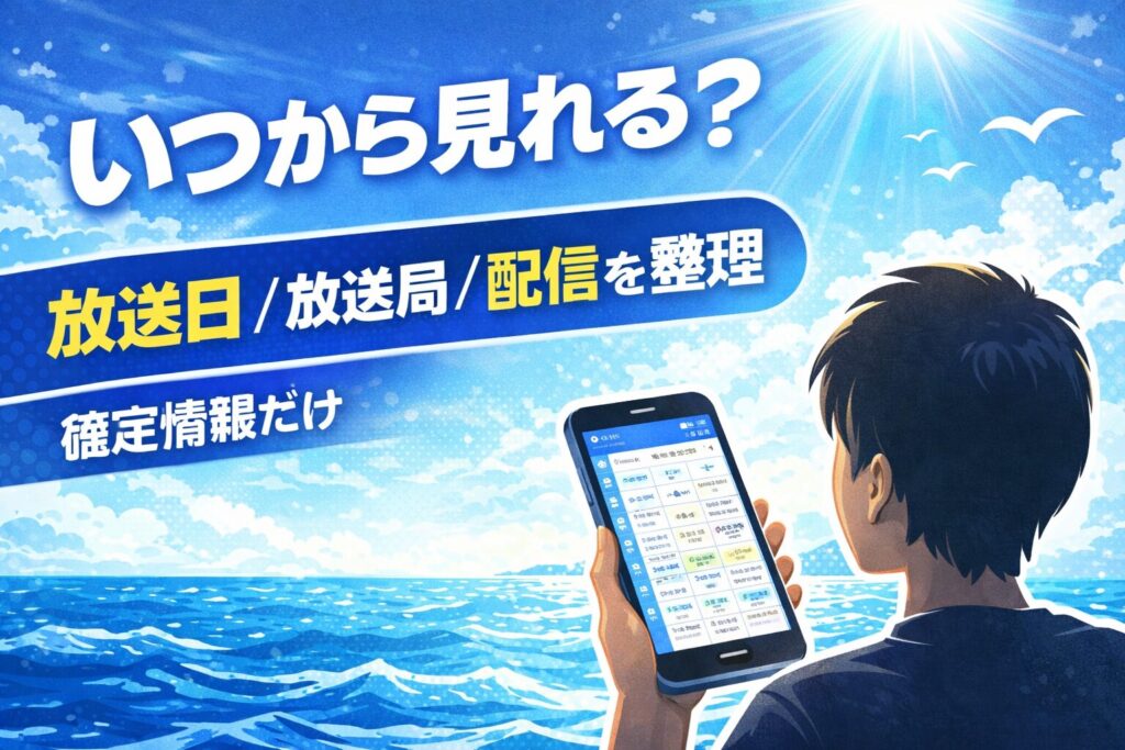 新アニメのニュースって、ワクワクする反面「いつから?どこで見れる?」が分からないと落ち着かないですよね…。僕も同じで、情報がバラバラだと余計に疲れちゃいます。だからこの記事は、放送日と放送局、配信を“同じ場所”にまとめて、続報が来たら要点だけ追記していきます。まずはブックマークしておけば、SNSで流れてくる噂に振り回されずに済みますよ。