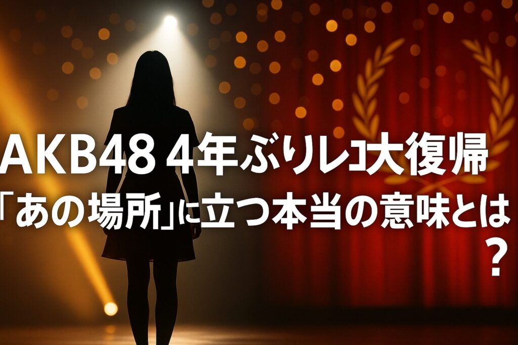 AKB48が4年ぶりにレコード大賞のステージへ復帰し、OGメンバーも集結する特別な展開が大きな話題に。前田敦子が“あの場所”に立つ本当の意味や、ファンの反応、AKB48のこれからについてわかりやすく解説します。 -
