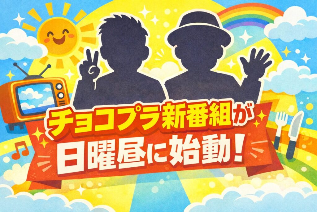 チョコプラの新番組が日曜昼に静かにスタートし、派手さはないものの「気づいたら見ていた」と感じる視聴者が続出。事前告知を抑えた理由や、日曜昼という時間帯との相性、今後定着する可能性について掘り下げます。