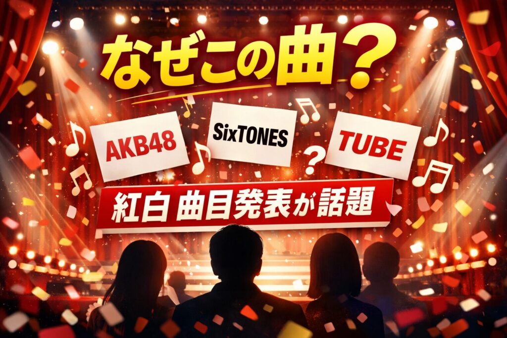 抜粋文 今年の紅白歌合戦で発表された曲目に、「なぜこの曲?」と感じた人は多いはずです。AKB48・SixTONES・TUBEの選曲に込められた理由を整理し、今年の紅白が伝えようとしているメッセージをわかりやすく解説します。