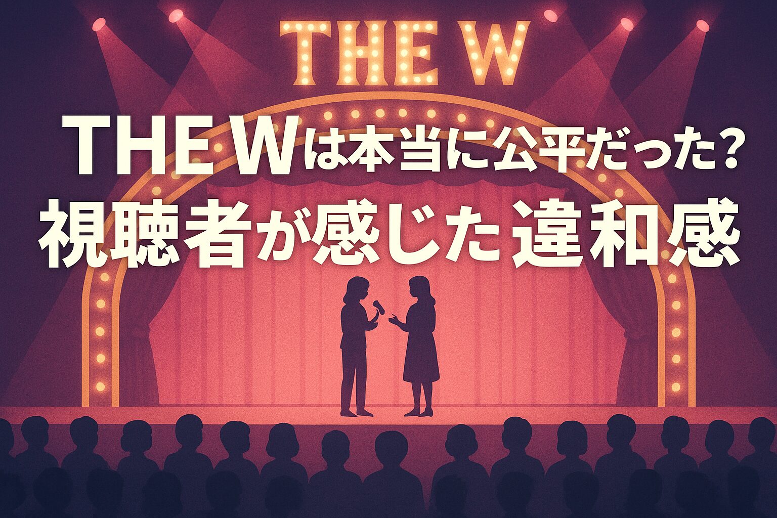 THE Wは、毎年「公平性」や「評価軸」が注目されやすい大会です。今回も結果そのもの以上に、審査の流れや番組全体の雰囲気に目が向いたことで、視聴者の受け取り方に差が生まれたのかもしれません。この記事では、放送後に広がった声をもとに、なぜ“モヤッとした瞬間”が生まれたのかを丁寧に読み解いていきます。