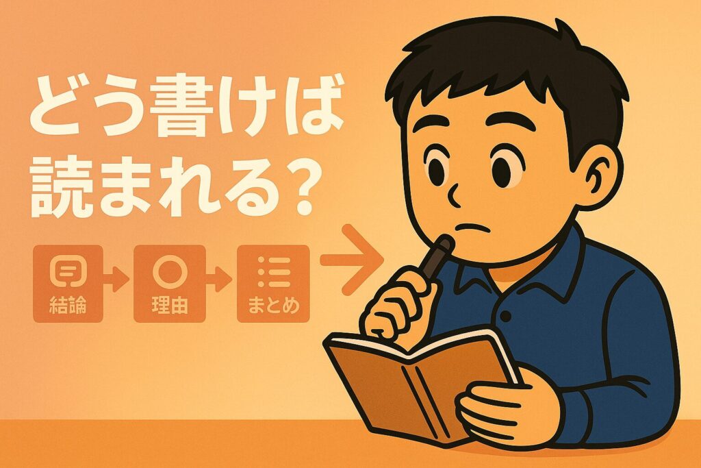 本文を書くときに最も大切なのは、どんなネタでも 「結論を先に置く」 ということです。多くの初心者がつまずくのは、理由から書き始めたり、背景説明を優先してしまうから。順番が逆になると、文章がまとまらず、読者も「結局どうなの?」と途中で離脱してしまいます。そこで役に立つのが “結論→理由→根拠” というシンプルな流れです。この流れさえ身につければ、どんなネタでも迷わず一気に書けるようになります。