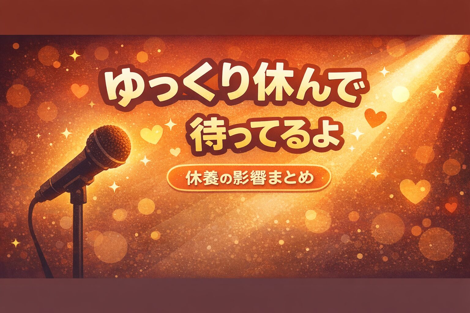 休養のニュースを聞くと、頭では分かっていても心がざわつきますよね。「このまま戻ってこなかったら…」と不安になるのも自然です。でも、休養は“終わり”ではなく、続けるために必要な調整であることが多い。だから今、私たちができる一番やさしい応援は、理由を詮索せず、公式の更新を静かに待つことです。